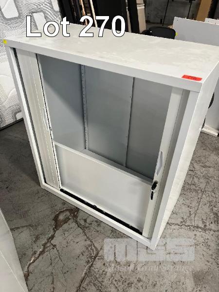 TAMBOUR CABINET, 100 x 90cm, CREAM STEEL