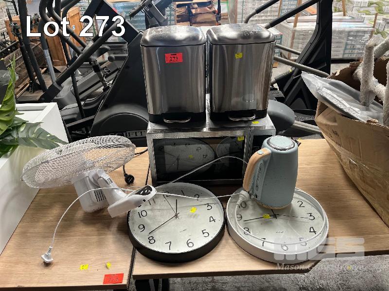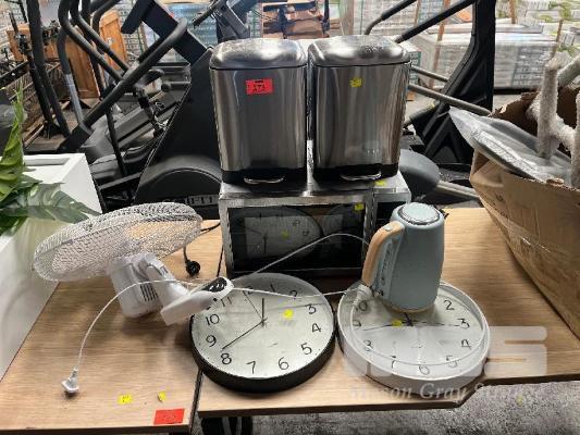 MICROWAVE OVEN, WALL CLOCKS, WASTE PAPER BINS, ETC