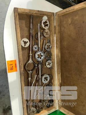 30 (APPROX) x PIECES DIE BUTTONS & HANDLE IN BOX