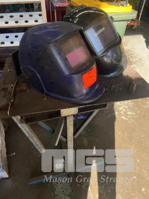 WELDING STAND, 2 x AUTO HEAD SHIELDS, LEATHER COAT & GLOVES