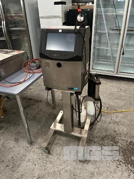 VIDEOJET INKJET CODING MACHINE, MOD: 1580, S/NO: 18327023C54ZH 240V ON STAINLESS STEEL TROLLEY