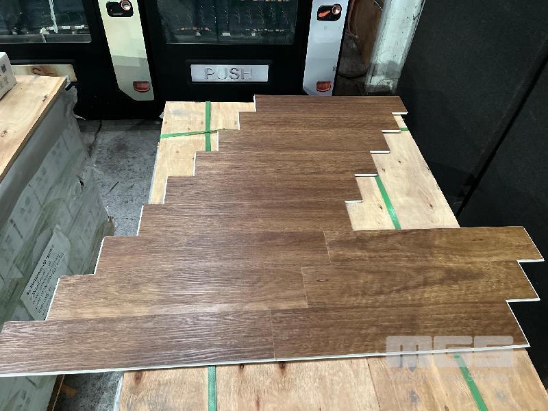 27.6m2 SIJIA HYBRID TIMBER LAMINATE FLOORING COMMERCIAL GRADE, WATER PROOF, SCRATCH PROOF, SUIT HERRINGBONE LAY PATTERN COLOUR: SPOTTED GUM TILE SIZE: 600 x 120 x 6.5mm (24 CARTONS TOTAL)