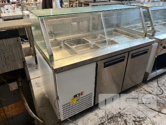 REFRIGERATED DISPLAY BAIN MARIE, 2 DOOR, FED MOD: PG150FA-YG, DOM: 2017, S/NO: 150FA-YG.3579219 CASTOR WHEELS, ILLUMINATED, WITH 7 x GASTRONORM TRAYS 240V 10 AMP PLUG