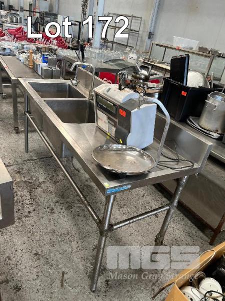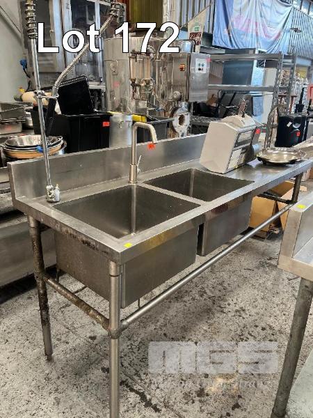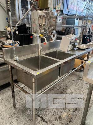 STAINLESS STEEL TWIN BOWL SINK, 190 x 70cm WITH TAPS & SPLASHBACK