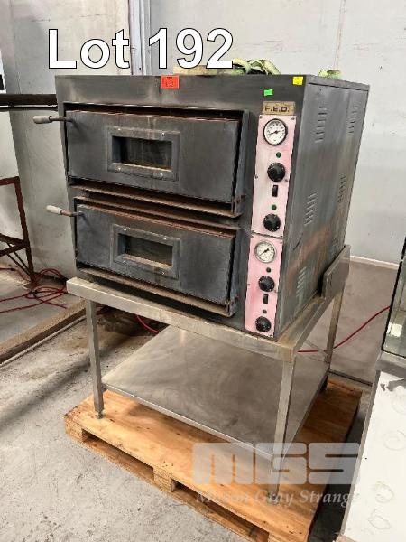 TWIN DECK PIZZA OVEN, FED 4515V ON STAINLESS STEEL STAND