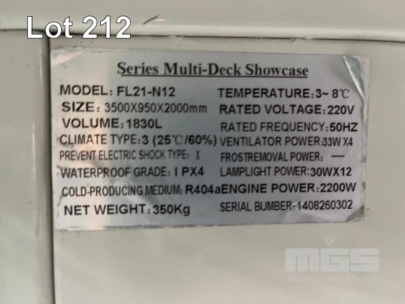 OPEN FRONT DELI DISPLAY, MOD: FL21-N12 3500 x 2100mm INTERNAL LIGHTING, PVC CURTAIN SELF CONTAINED UNIT, 240V