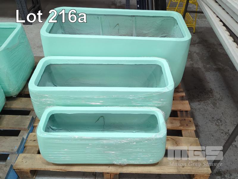 1 (SINGLE) X SET OF 3 CONTEMPORARY PLANTER POTS (NEW) STYLE MONARCH TROUGH COLOUR BLUE SIZES 1 @ 970 x 470 x 470mm 1 @ 800 x 340 x 340mm 1 @ 650 x 230 x 240mm RRP $379.99