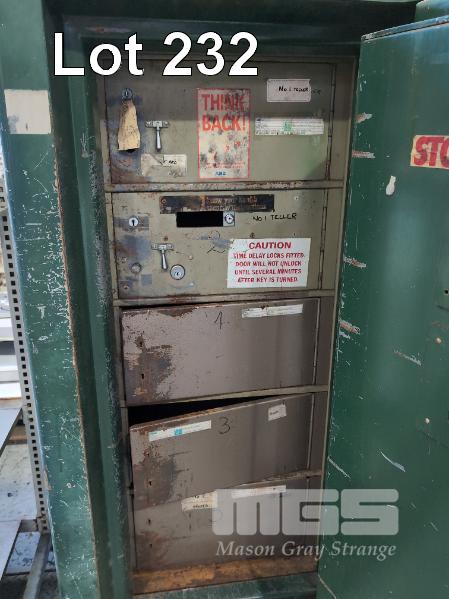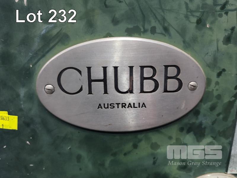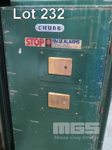 CHUBB BANK SAFE. DUAL COMBINATION LOCKS. 5 X INTERNAL LOCKABLE COMPARTMENTS WITH KEY. TORCH & DRILL RESISTANT. 2 HOUR FIRE RATING. HIGH INSURANCE RATING. 790 X 840 X 1560 MM (W D H). WEIGHT 3.0 TONNE.