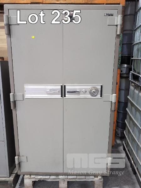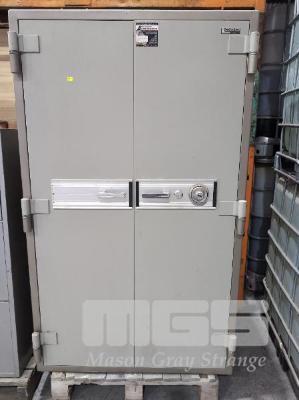 LORD 2-DOOR FIRE RESISTANT DOCUMENT SAFE. KEY AND COMBINATION LOCKS, 2 X KEYS. 7 X SHELVES AND 2 X LOCKABLE DRAWERS. 1040 X 700 X 1740 MM (W D H). WEIGHT 900 KG. 1 HOUR FIRE RATING. ** NO KEY FOR INTERNAL DRAWERS **