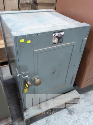 VINTAGE MILNER SAFE. ORIGNAL LOCK MISSING NOW LOCKS WITH PADLOCK HASP & STAPLE. PADLOCK & KEY PROVIDED. SUITABLE FOR PISTOL & AMMO STORAGE. 610 X 610 X 760 MM (W D H). WEIGHT 300 KG. 30 MINUTE FIRE RATING.