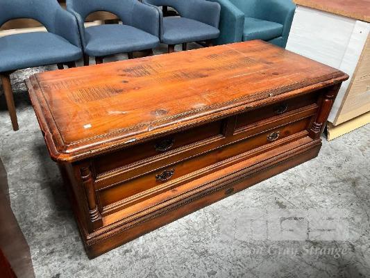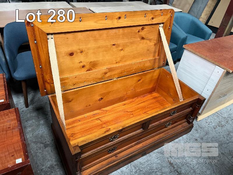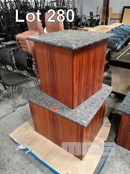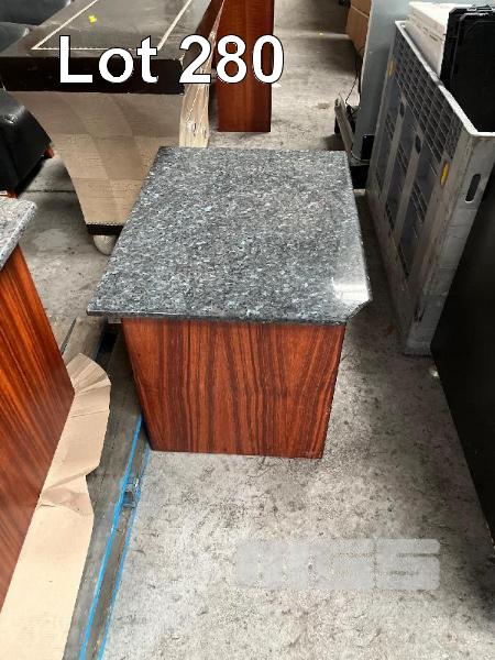 BLANKET BOX, 1470 x 660mm, STAINED TIMBER & 3 x GRANITE TOP TABLES