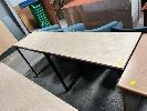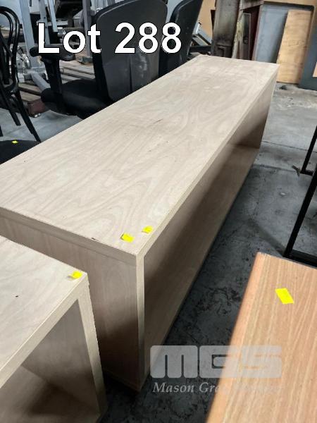 2 x MOBILE SHOP DISPLAY, EACH 1800 x 500mm & 2 x DISPLAY TABLES, BEECH LAMINATE