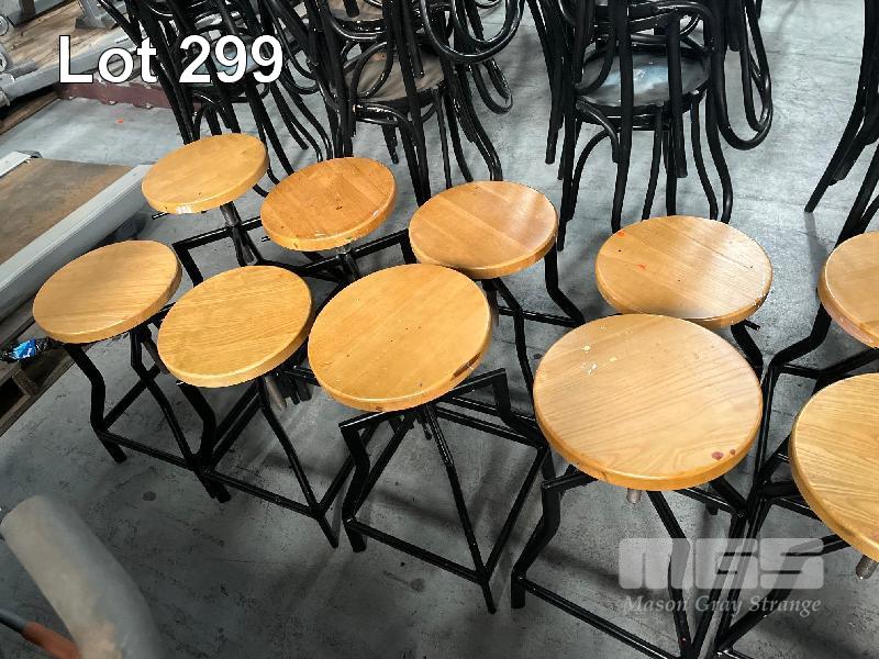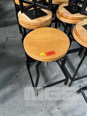 9 x CAFE STOOLS, STEEL FRAME, TIMBER TOP, ADJUSTABLE HEIGHT