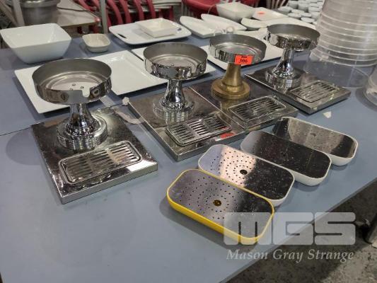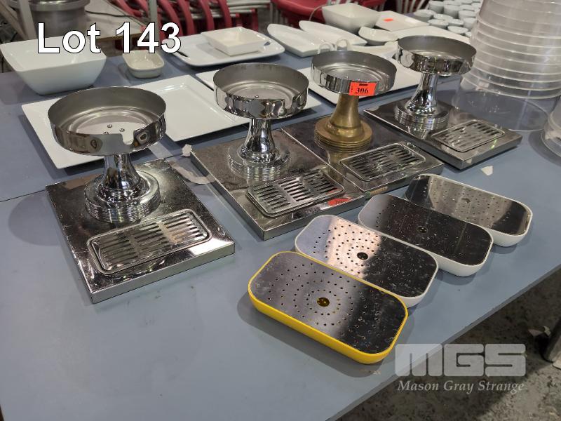 4 X LIQUID DISPENSER STANDS & DRAIN DISHES