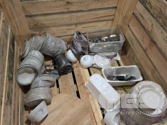 ASSORTED CROCKERY, CUTLERY ETC (CONTENTS OF APPLE BIN, BIN NOT INCLUDED)
