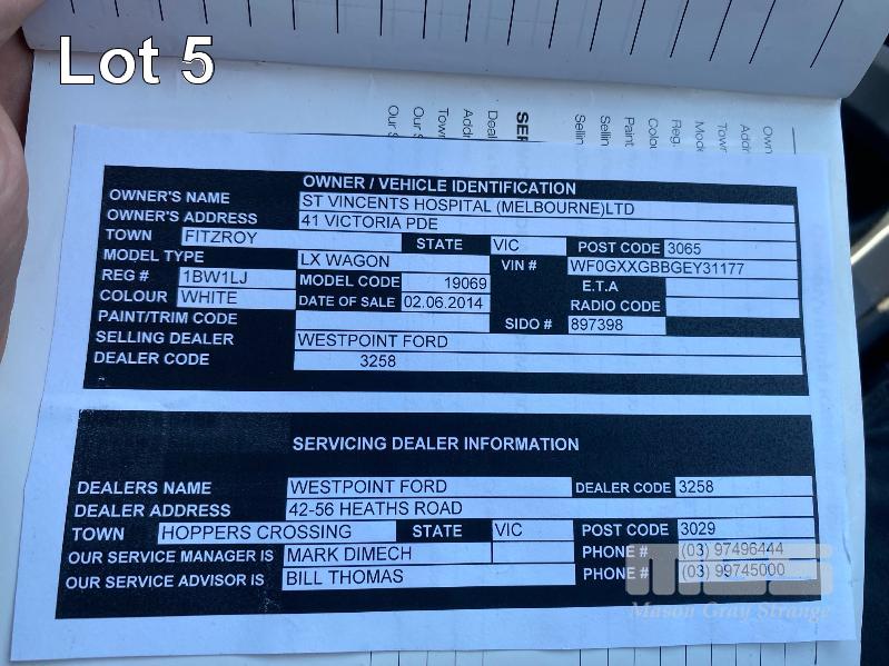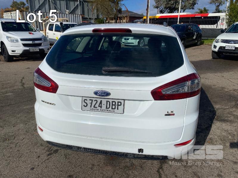 2014 FORD MONDEO 3 LX STATION WAGON REG: S724 DBP (SA) VIN: WF0GXXGBBGEY31177 ENG: TXBAEY31177 ODO: 150,088kms SHOWING DURA TORQ 4 CYLINDER TURBO DIESEL, AUTOMATIC TRANSMISSION, WHITE DUCO, 4 DOORS, 5 SEAT, AIR BAG, AIR CON, CD PLAYER, CRUISE CONTROL, IMMOBILISER, POWER WINDOWS, SPARE WHEEL, KEY #11 (WITH PAPERS, WITH 1 KEY/S, WITH OWNER'S MANUAL, WITH SERVICE BOOKS) CONDITION: BONNET - DENTS & SCRATCHES