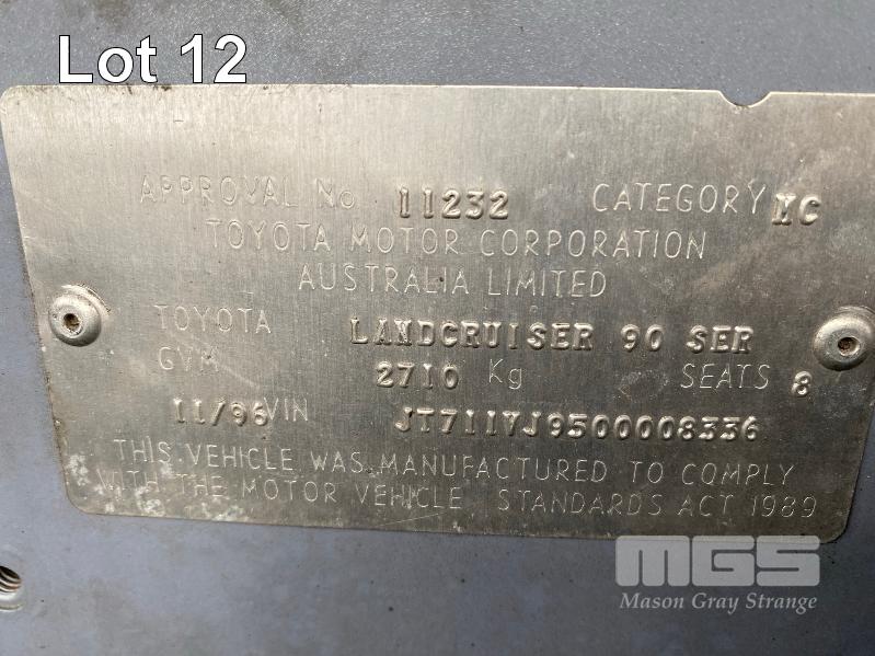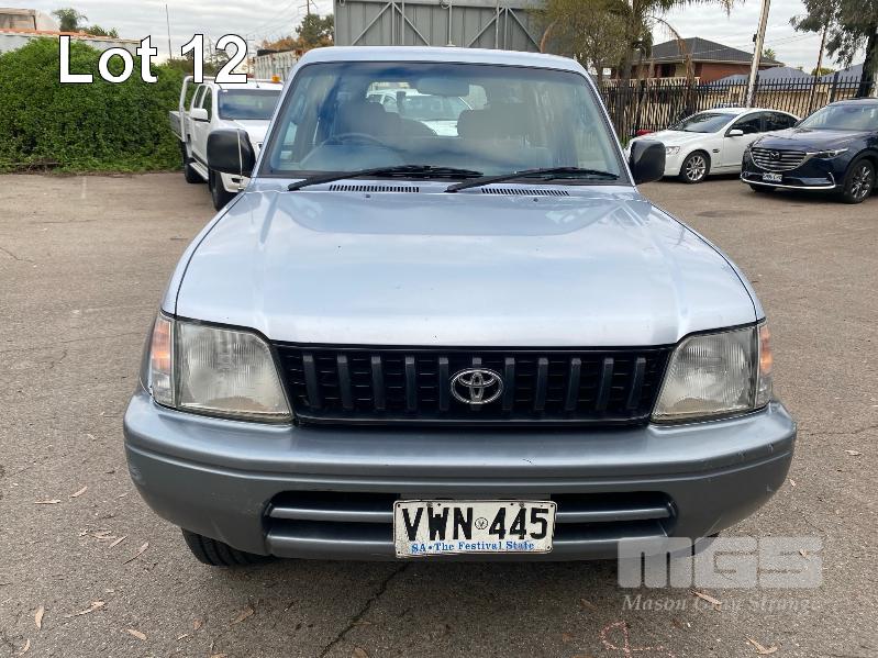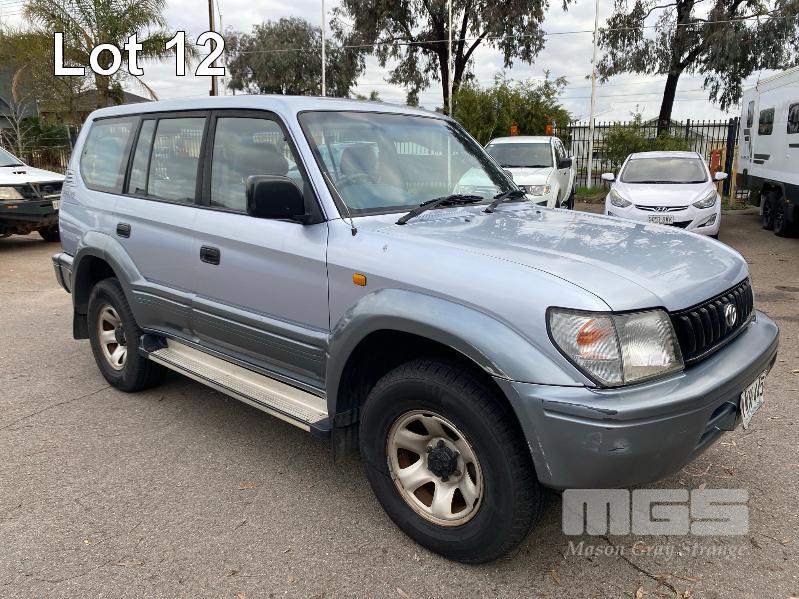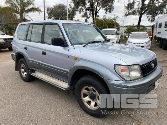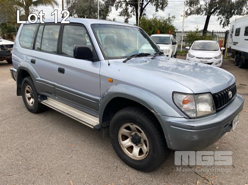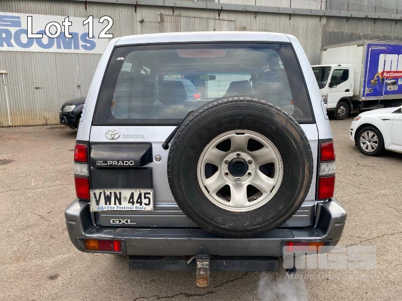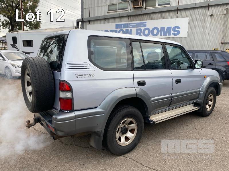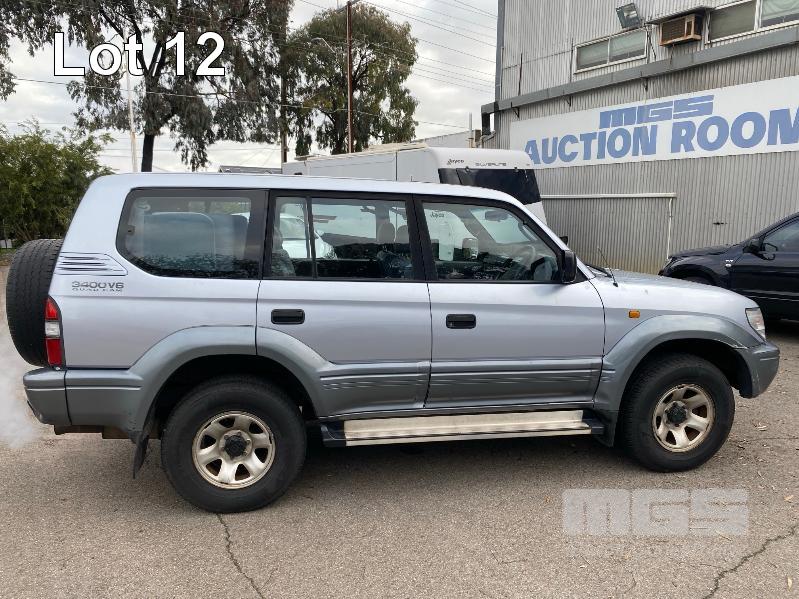 1996 TOYOTA LANDCRUISER 90 SERIES, PRADO GXL, SUV 4x4 REG: VWN 445 (SA) VIN: JT711VJ9500008336 ENG: 5VZ0238393 ODO: 426,036kms SHOWING 3.4 LTR, V6, AUTOMATIC TRANSMISSION, SILVER DUCO, 5 DOORS, 8 SEAT, 4x4 AIR CON, CD PLAYER, CRUISE CONTROL, POWER STEERING, POWER WINDOWS, SIDE STEP, SPARE WHEEL, SUNROOF, TOW BAR, SUB TANK, KEY #54 (WITH PAPERS, WITH 2 KEY/S) CONDITION: RUNS ROUGH - BLOWS SMOKE BODY - MINOR SCRATCHES AND DENTS
