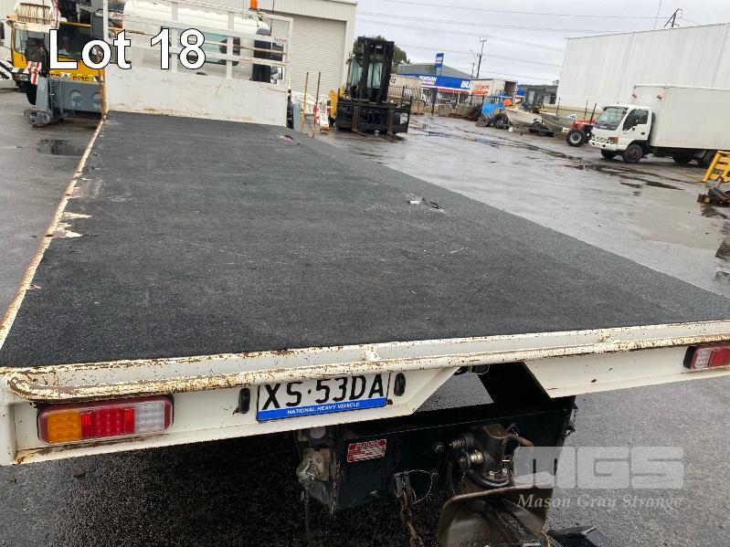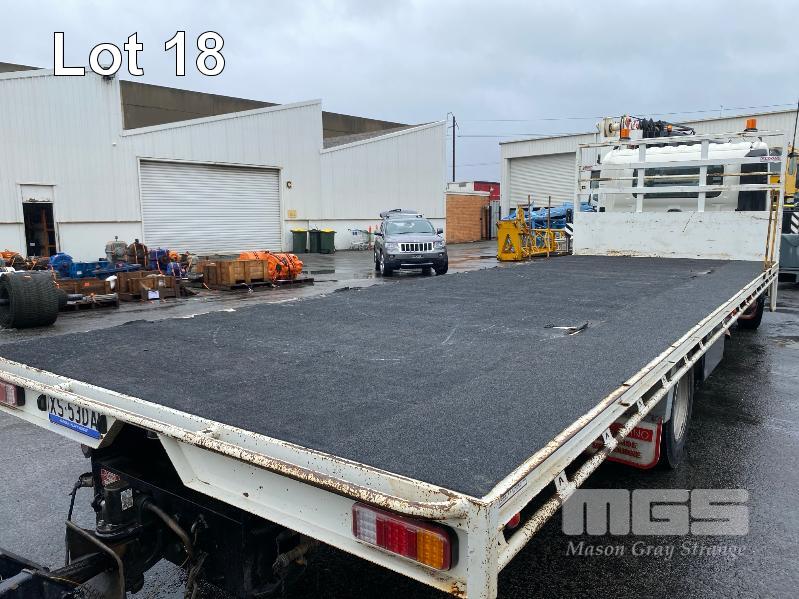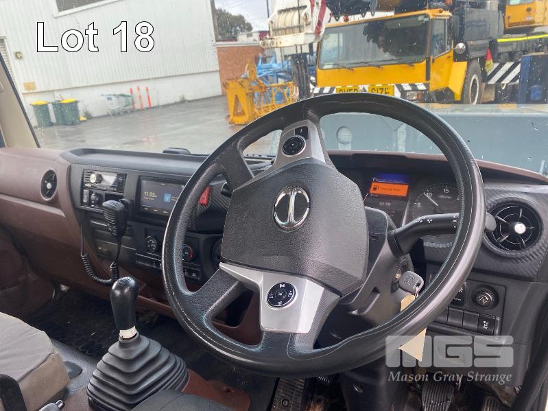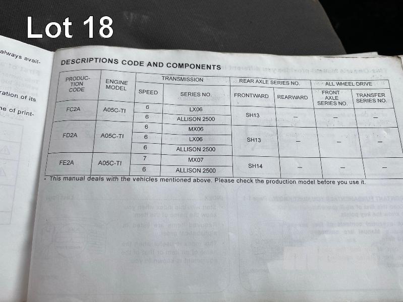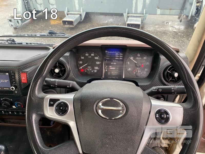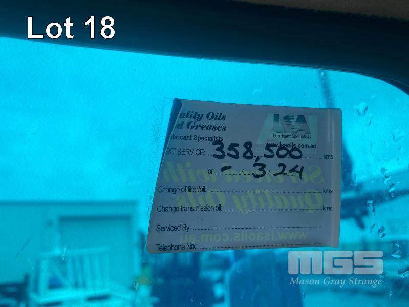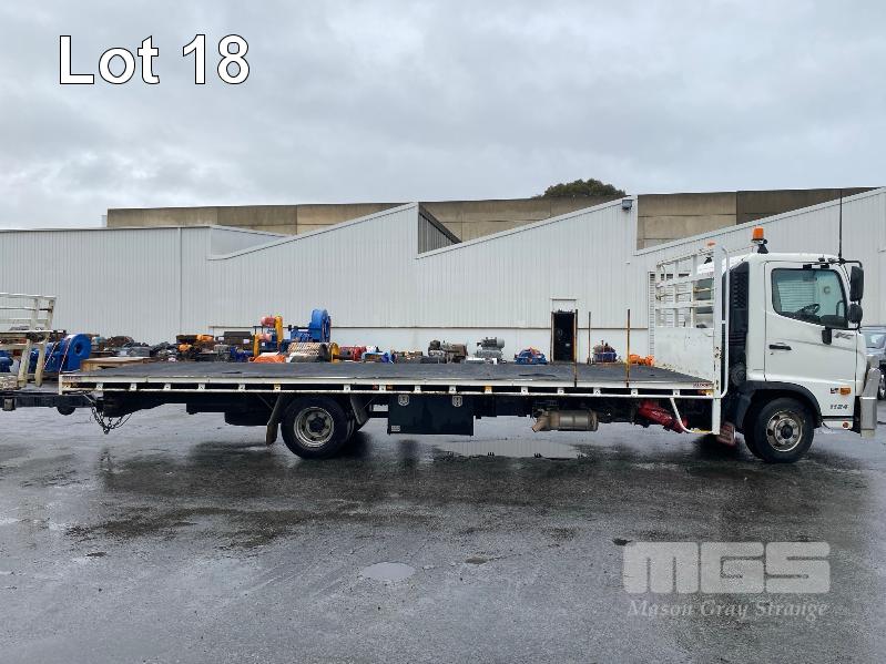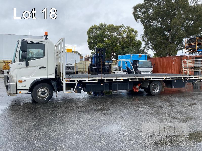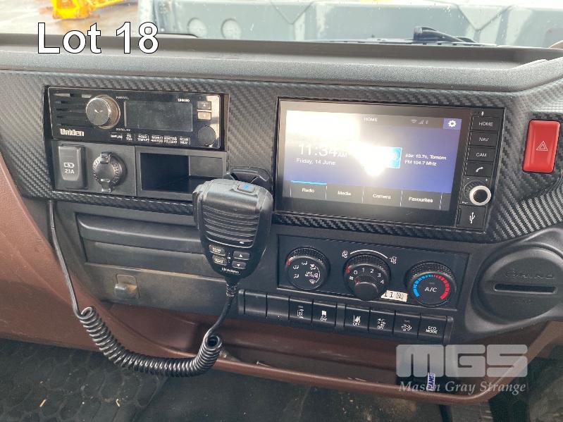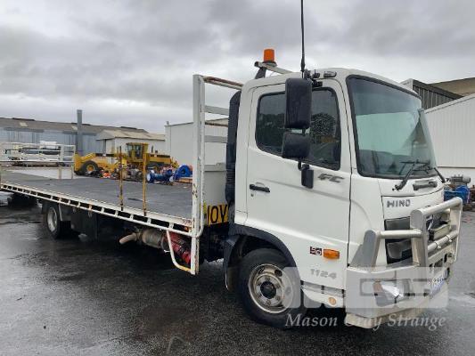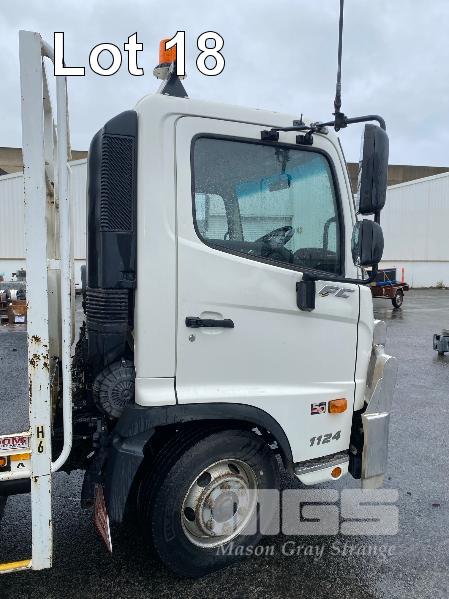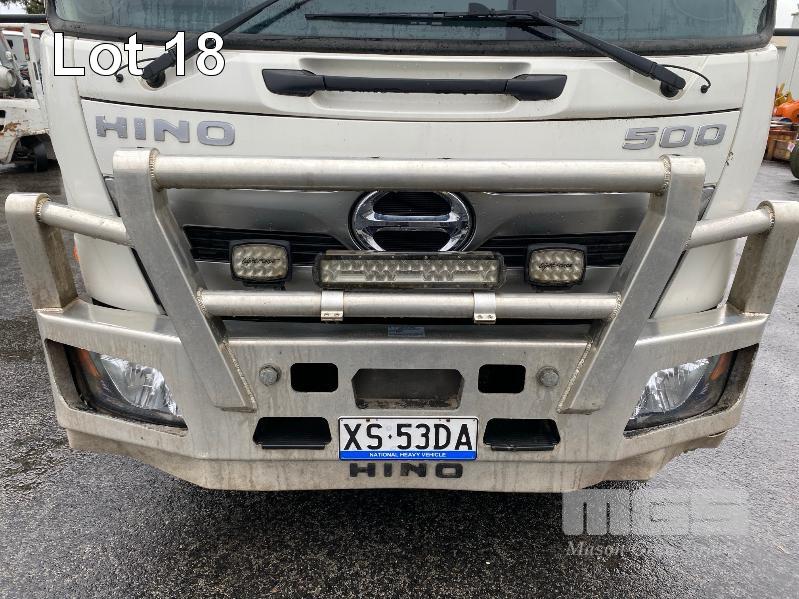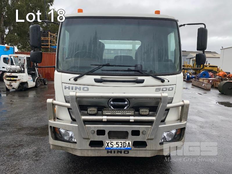2020 HINO 500 SERIES FC1124 4x2 SINGLE CAB TRAY TOP REG: XS 53 DA VIN: JHDFC2AN1XXX10087 ODO: 361,090kms SHOWING HOURS: 5,642hours GVM: 11,000kg GCM: 16,000kg HINO, 4 CYLINDER TURBO DIESEL, 6 SPEED MANUAL TRANSMISSION, SPRING SUSPENSION, WHITE DUCO, 235/75R17.5 2 DOORS, 3 SEAT, AIR CON, BULL BAR, DUAL LONG RANGE TANKS, RING FEEDER, STEEL RIMS, TRAY SIZE: 7500 x 2500mm 2 WAY RADIO, CRUISE CONTROL RED ARC BRAKE CONTROLLER WARNING LIGHTS SPARE WHEEL, 3 x UNDERTRAY TOOL BOXES KEY #22 (WITH PAPERS, WITH 2 KEY/S, WITH OWNER'S MANUAL) CONDITION: DRIVER DOOR - DENTS & SCRATCHES BULL BAR - SLIGHTLY BENT