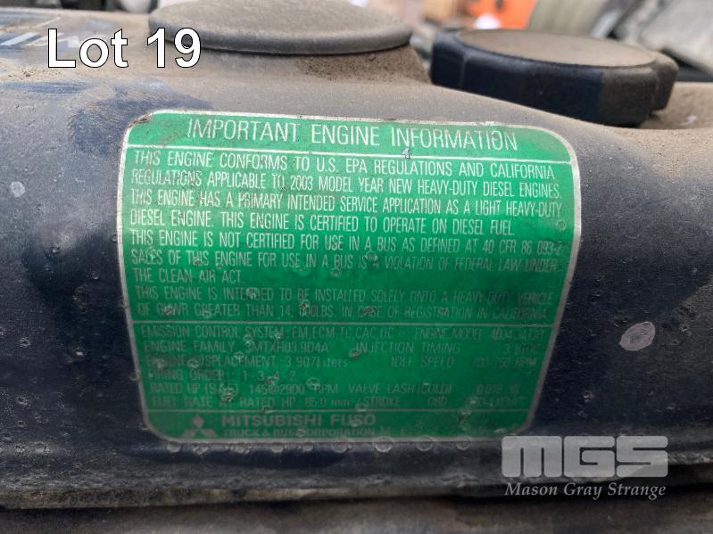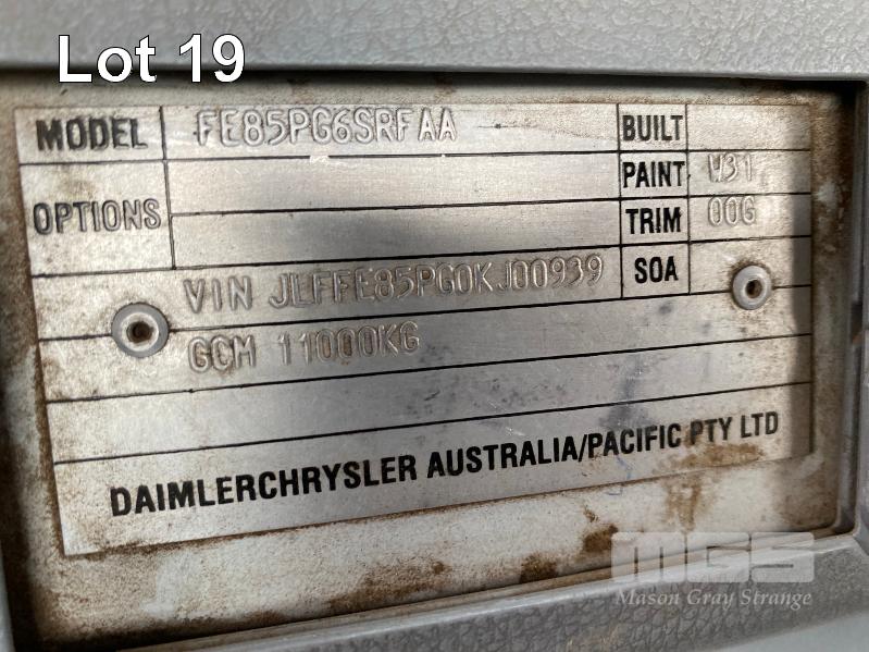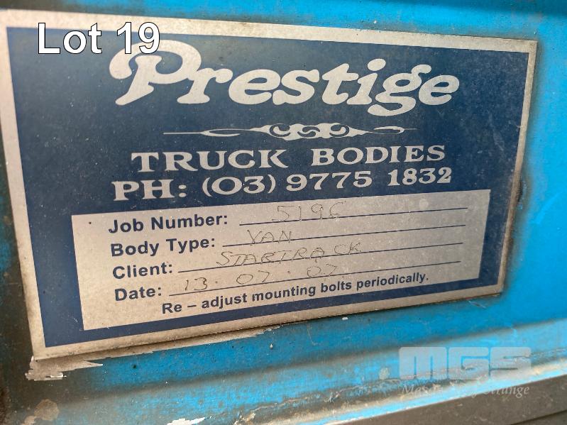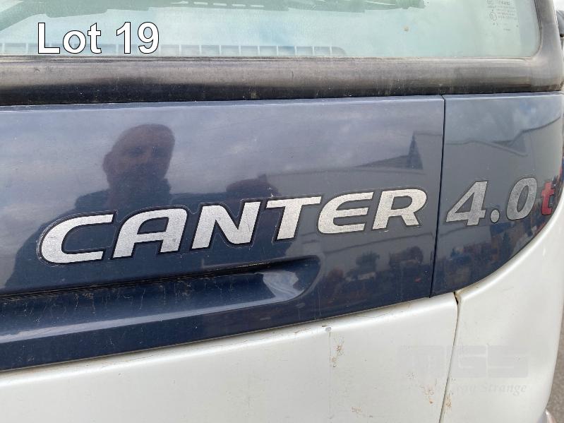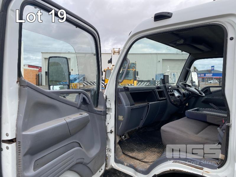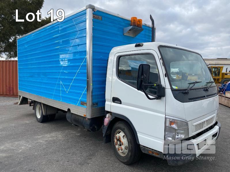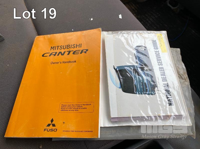 2007 MITSUBISHI CANTER 7/800 FE85PG6 4x2 SINGLE CAB PANTEC REG: NO PLATES VIN: JLFFF85PG0KJ00939 ENG: 4D34L41714 ODO: 251,504kms SHOWING GVM: 7,500kg GCM: 11,000kg MITSUBISHI, 4 CYLINDER TURBO DIESEL, 5 SPEED MANUAL TRANSMISSION, SPRING SUSPENSION, WHITE/BLUE, 215/75R17.5, 2 DOORS, 3 SEAT, AIR CON, REAR HYDRAULIC TAILGATE LOADER, (NO REMOTE CONTROL) PANTEC FITTED OUT WITH SHELVING REAR ROLLER DOOR REVERSE CAMERA WITH LCD SCREEN SPARE WHEEL BODY SIZE: 4850 x 2300 x 2150mm (H) KEY #40 (WITH PAPERS, WITH 1 KEY/S, WITH OWNER'S MANUAL)