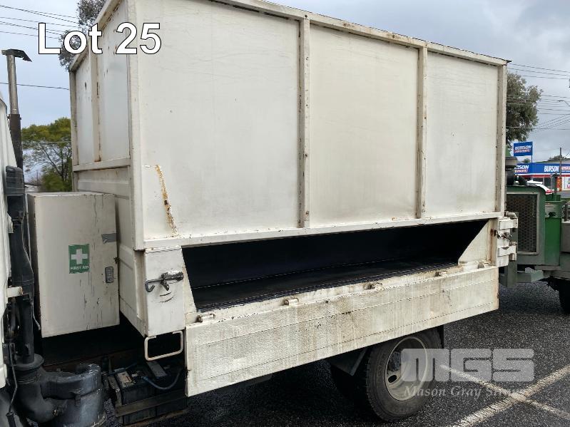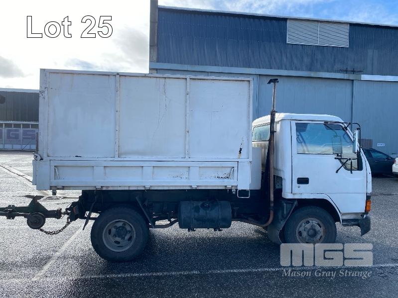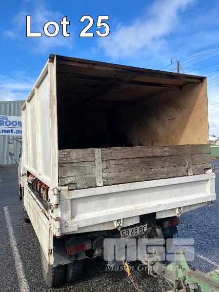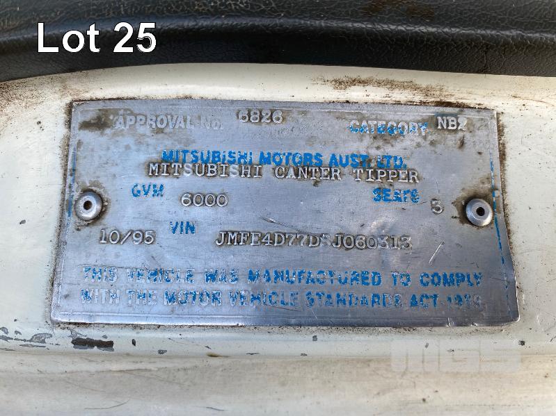 1995 MITSUBISHI CANTER FE449CX 4x2 TIPPER, SINGLE CAB REG: SB 48 BC (SA) VIN: JMFE4D77DSJ060313 ENG: 4D34B77826 ODO: 510,688kms SHOWING GVM: 6,000kg 4 CYLINDER DIESEL, 5 SPEED MANUAL TRANSMISSION, SPRING SUSPENSION, WHITE DUCO, 2 DOORS, 3 SEAT, RING FEEDER, HIGH SIDED ENCLOSED TIPPER BODY SUIT WOOD CHIPPER, HINGED SIDES & 2 WAY TAILGATE, UNDER TRAY TOOL BOX & SIDE STORAGE COMPARTMENT ENGINE REBUIT AT 400,000kms KEY # (WITH PAPERS, WITH 1 KEY/S)