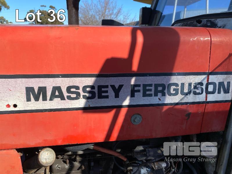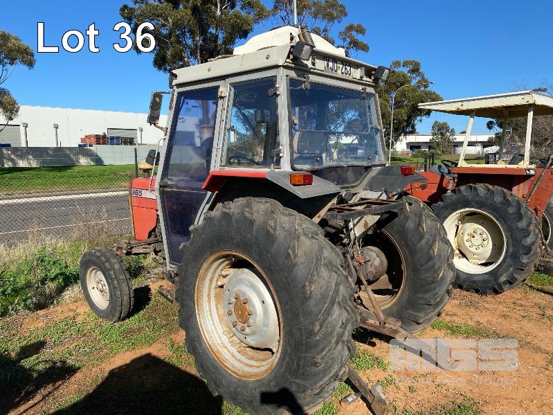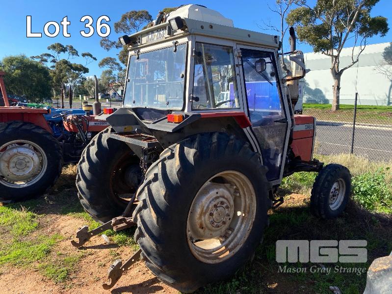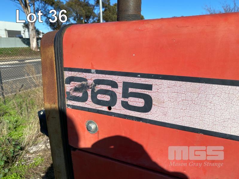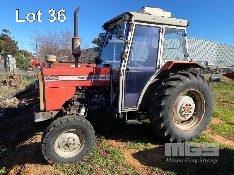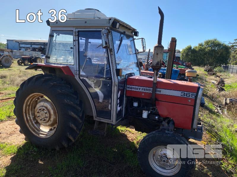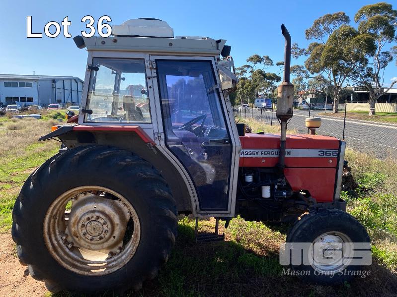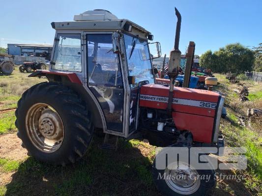 1995 MASSEY FERGUSON TRACTOR 4x2 MOD: 365 4 CYLINDER DIESEL, 61HP, RECOND ENGINE, HOURS: 707 SHOWING MANUAL 12/3 TRANSMISSION REG: VJD263 PTO, 3 PTL ENCLOSED CAB, ROOF MOUNT A/C UNIT 4 x REAR MOUNT HYDRAULIC FITTINGS 1 x KEY *** SOLD INSITU AT POORAKA ***