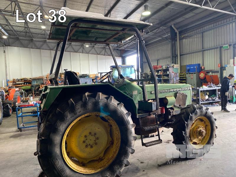 1995 JOHN DEERE TRACTOR, 4x4 MOD: 2300 REG: GPS 586 S/NO: 23000005726 4 CYLINDER DIESEL, 69HP IN CHASSIS ENGINE REBUILD HOURS: 2,620 SHOWING MANUAL 10/2 TRANSMISSION ROPS & FOPS PTO, 3PTL 2 x HYDRAULIC FITTINGS, ADJUSTABLE FRONT WEIGHTS 1 x KEY *** SOLD IN SITU AT POORAKA ***