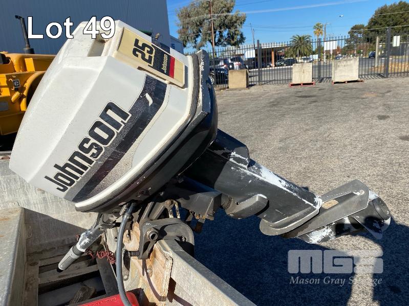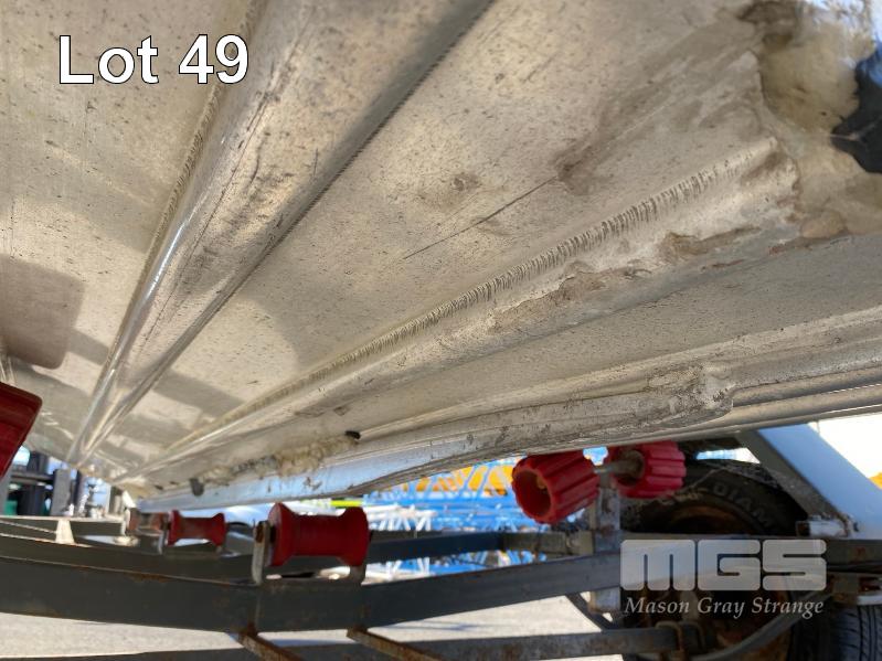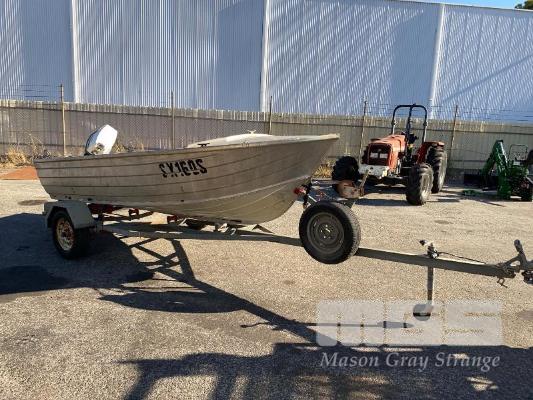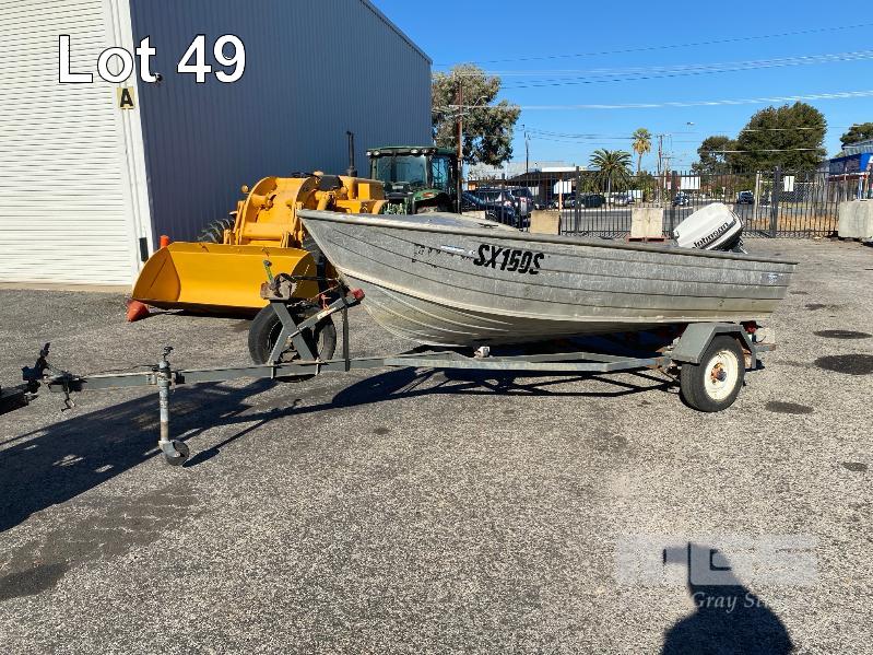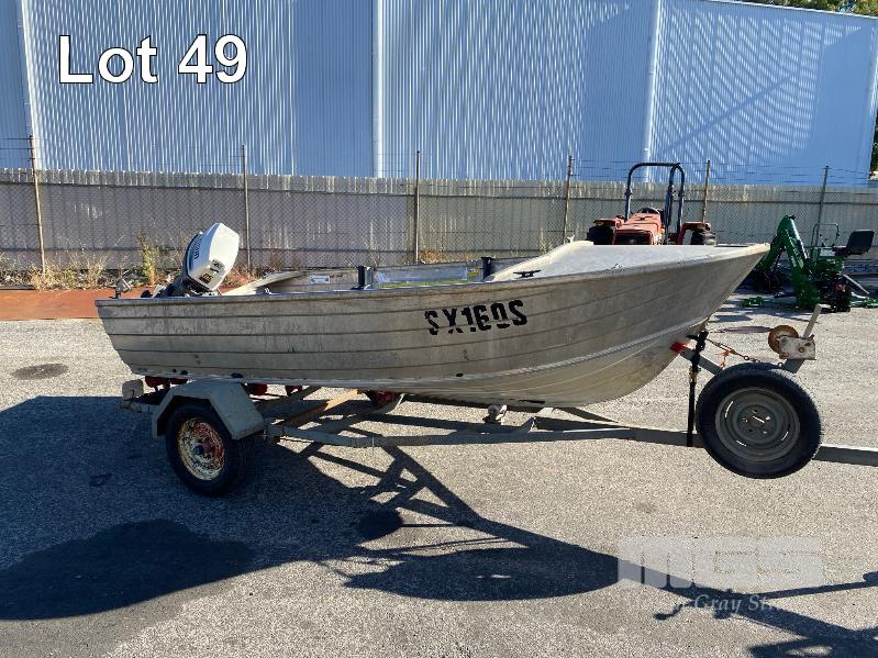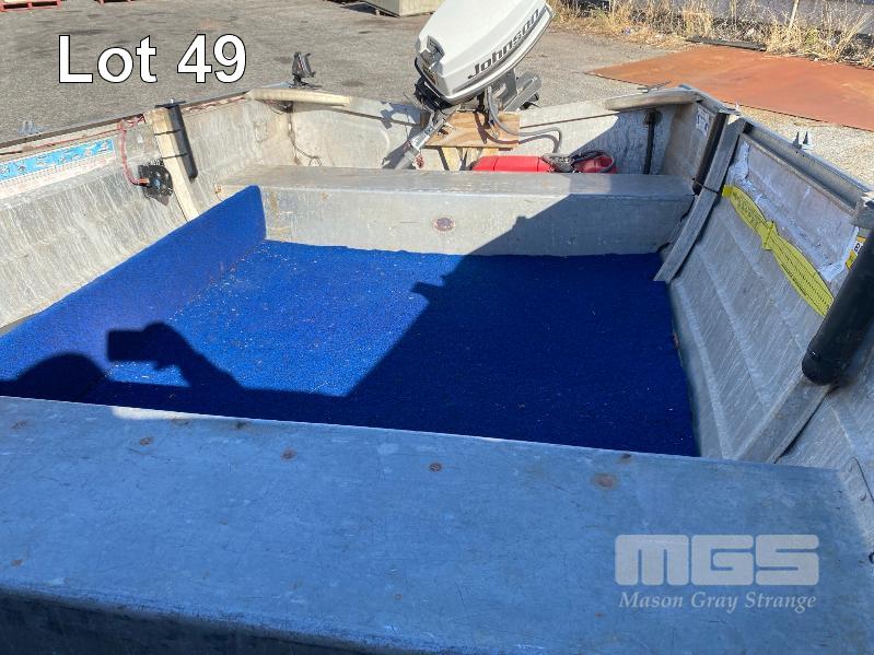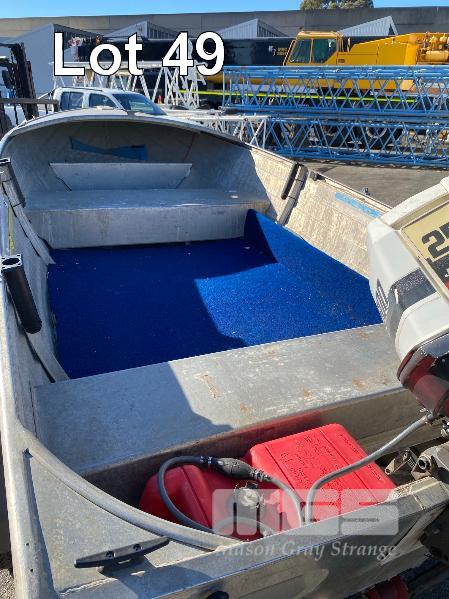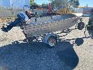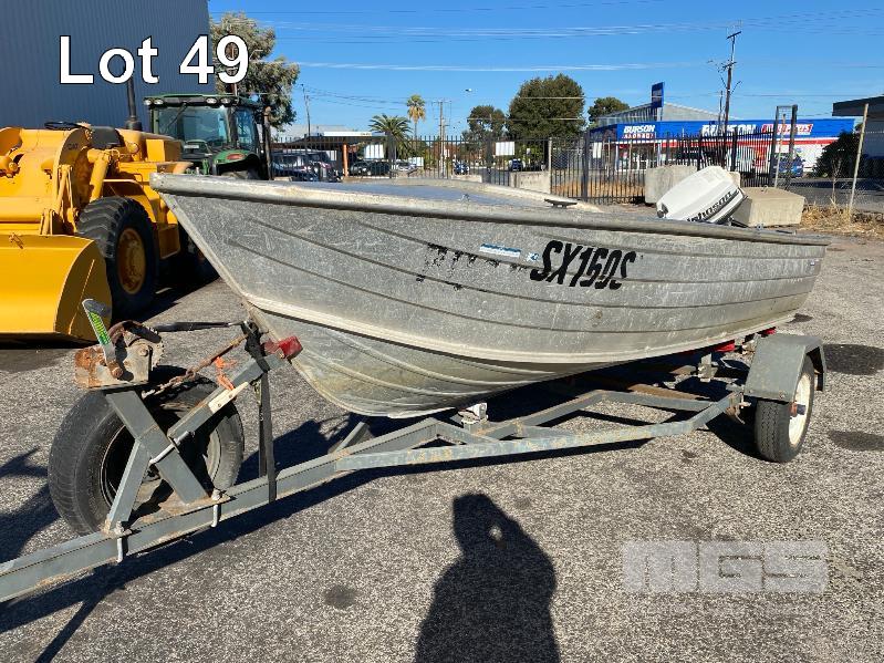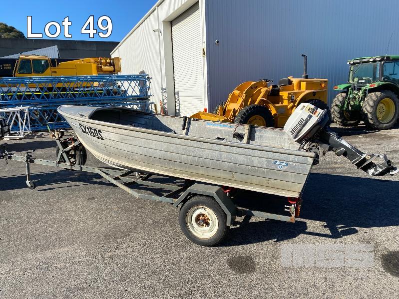 STACER ALLOY BOAT, 3.9m POWERED BY JOHNSON 25HP, 2 STROKE OUTBOARD ENGINE MARINE REG: SX160S ON SINGLE AXLE TRAILER REG: NO PLATES BALL HITCH, JOCKEY WHEEL, SPARE WHEEL, HAND WINCH