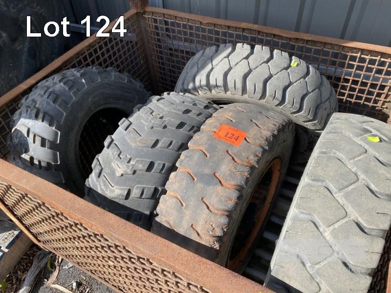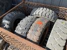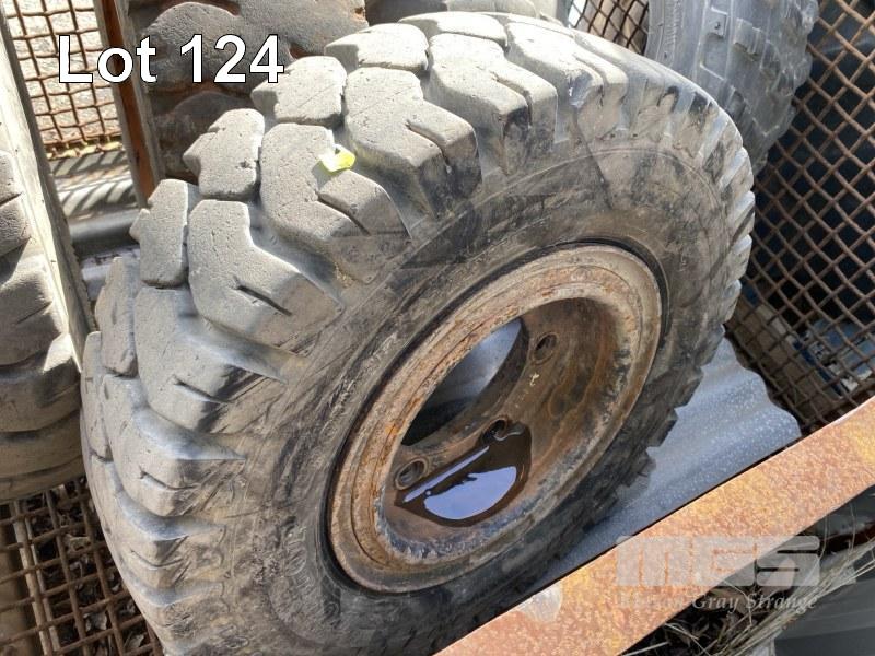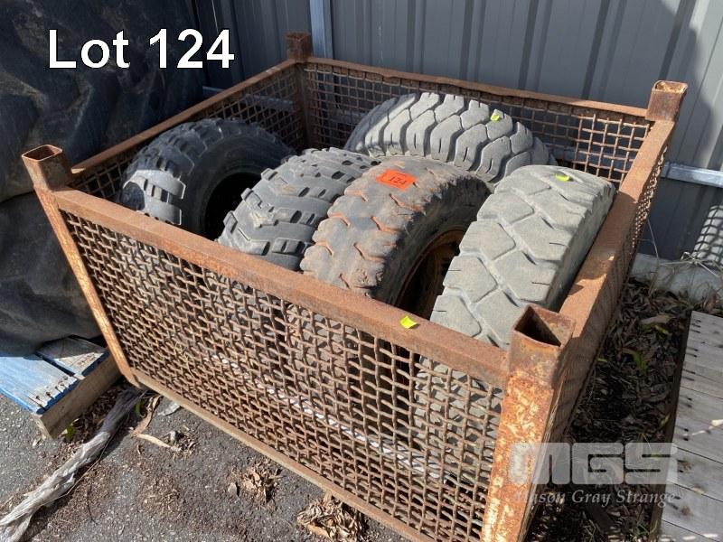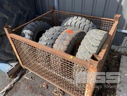 3 x FORKLIFT TYRES, 7-12.0 & RIMS & 2 x ATV TYRES, CARLISLE, 26x10.0 INCLUDING STEEL STILLAGE