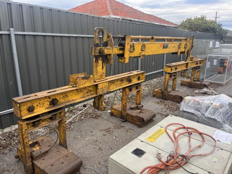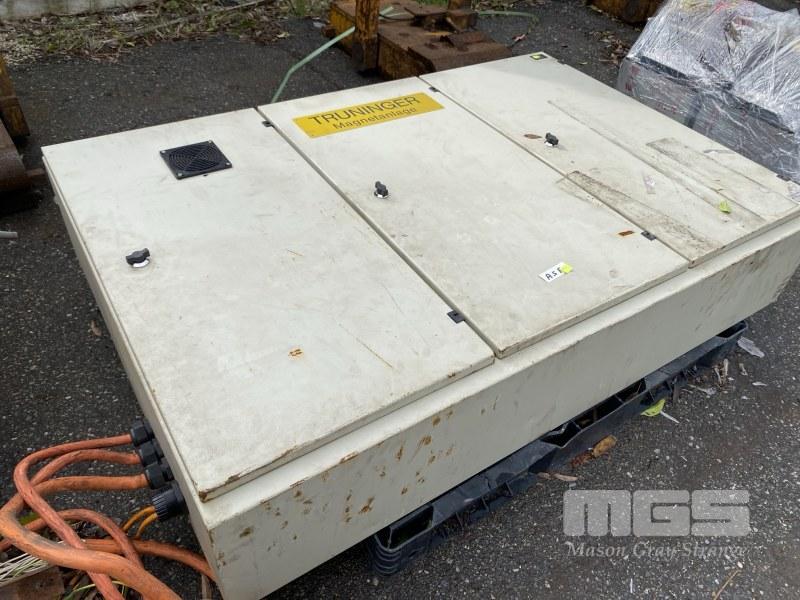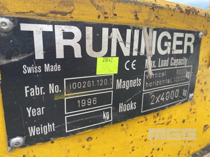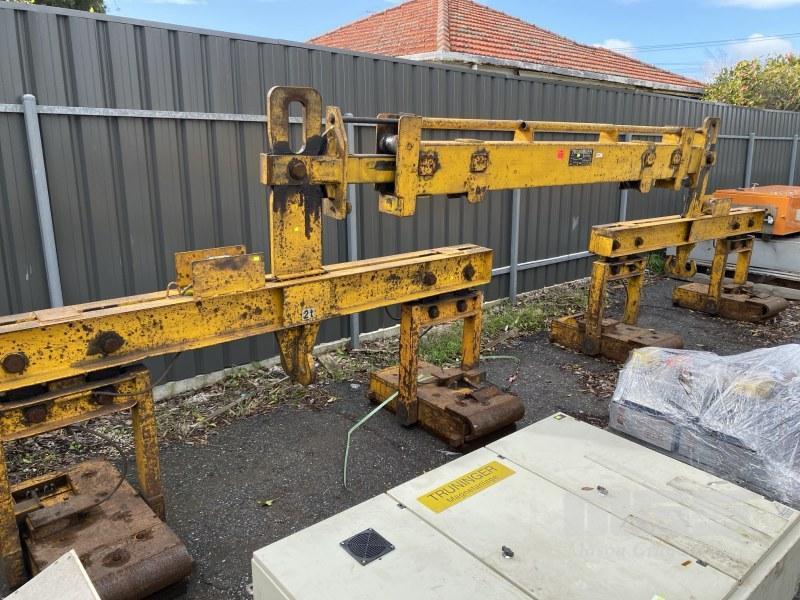 MAGNETIC LIFTER, TRUNINGER MAGNETANLAGE TYPE: 100261.120 ADJUSTABLE TELESCOPIC SPREAD DOM: 1996 4 x MAGNETS, LOAD CAP VERTICAL: 8,000kg HORIZONTAL: 10,000kg HOOKS: 2 x 4,000kg WITH POWER CONTROL CABINET BATTERY BACK UP PACK & CABLE REELS