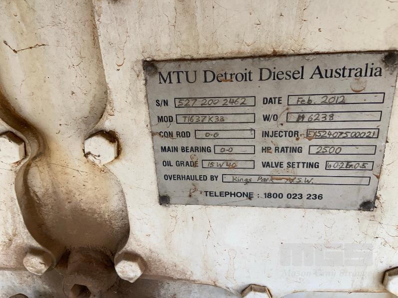 MTU USA BUILT MTU DDC V16 DIESEL ENGINE, PART NO. 5260900014 RATED: 2500HP 4 x TURBO CHARGERS, INCLUDES STARTER & ALTERNATOR REBUILT MTU DETROIT AUSTRALIA S/NO: 5272002462 DATE OF REBUILD: FEB 2012 MOD: T1637K33 W/O: M6238