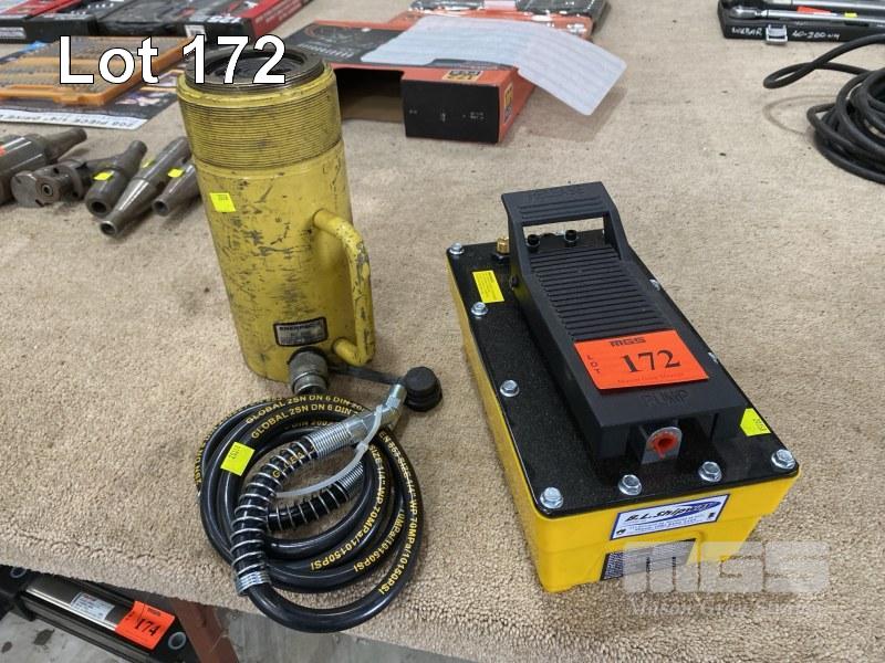 FOOT OP. WITH ENERPAC 50T HYDRAULIC RAM RC506 & HOSE