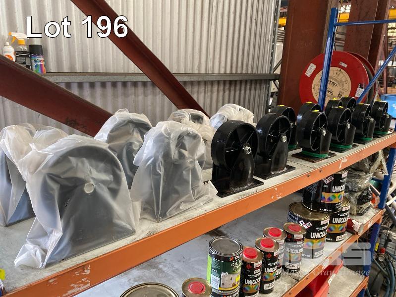 & 8 x FIXED CASTOR WHEELS, BLACK, 150mm (D), HEAVY DUTY