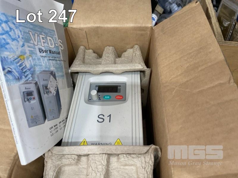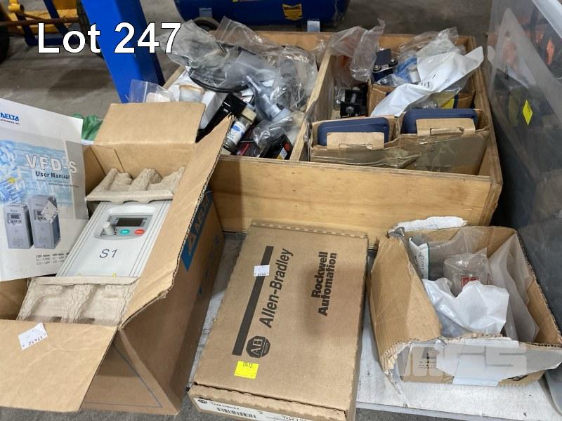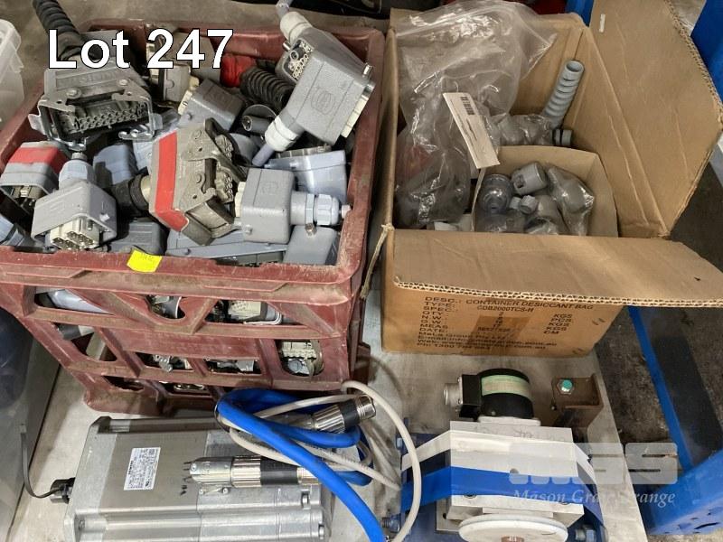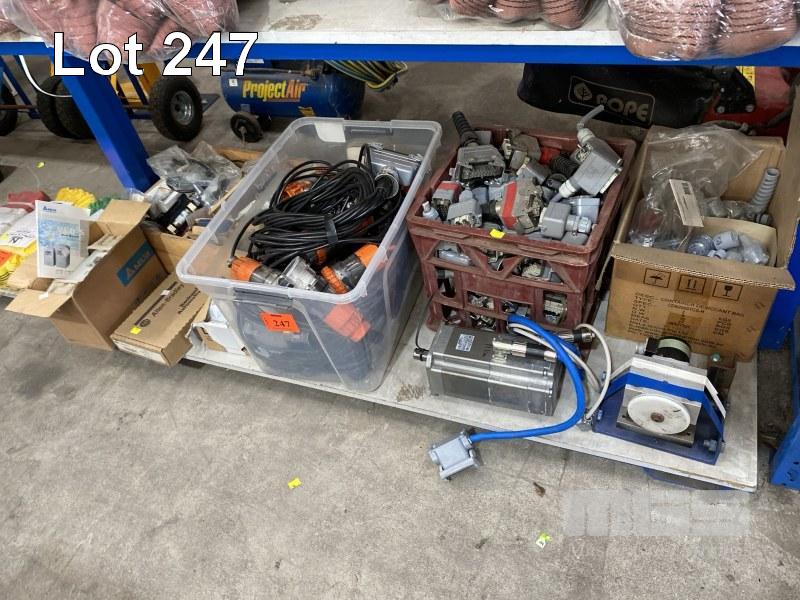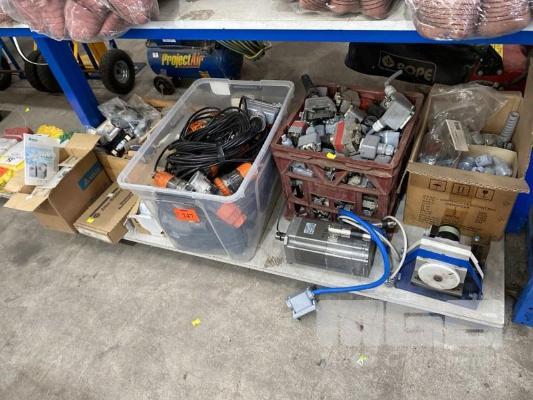 ELECTRONIC COMPONENTS INCLUDING ALLEN BRADLEY 1746-HSCES SPEED COUNTER, DELTA VARIABLE SPEED DRIVE, SIEMANS 4NM MOTOR, CONTROLLERS, LIMIT SWITCHES, WIELAND 10 WAY CONNECTORS SOCKET & CABLES, 415V, 240V, AV, ETC 1 x SHELF