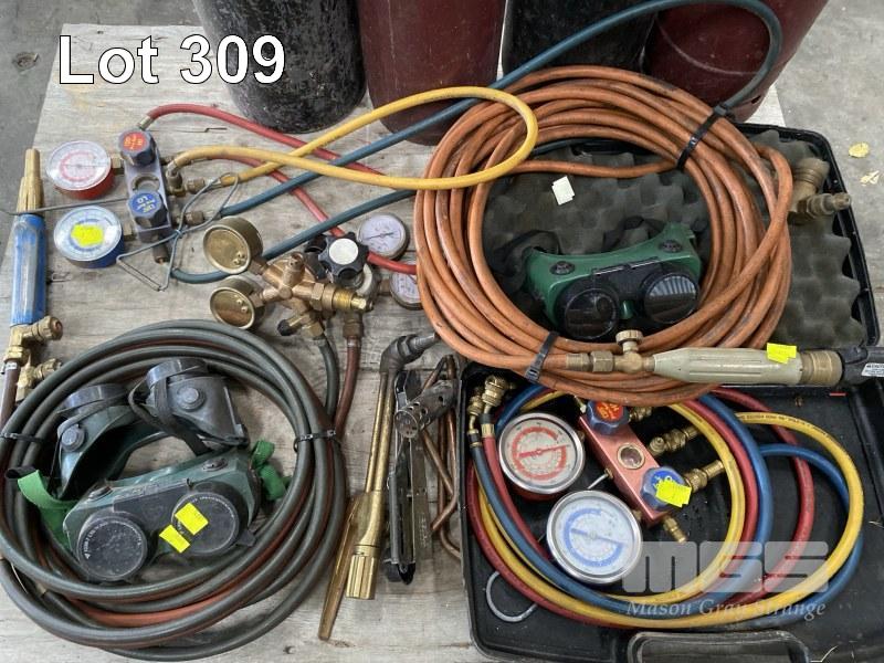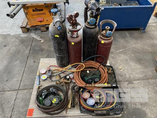 4 x OXY ACETYLENE WELDING SET INC. BOTTLES, REGS, TOURCHES & HOSES,