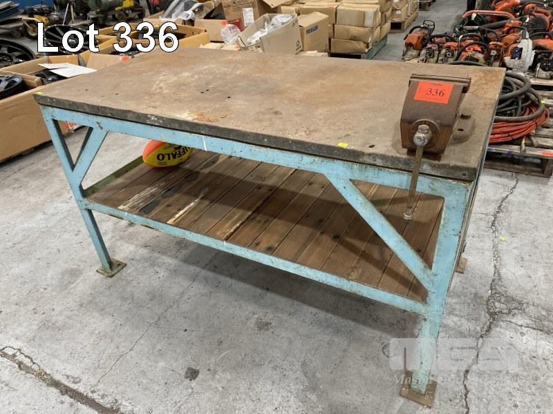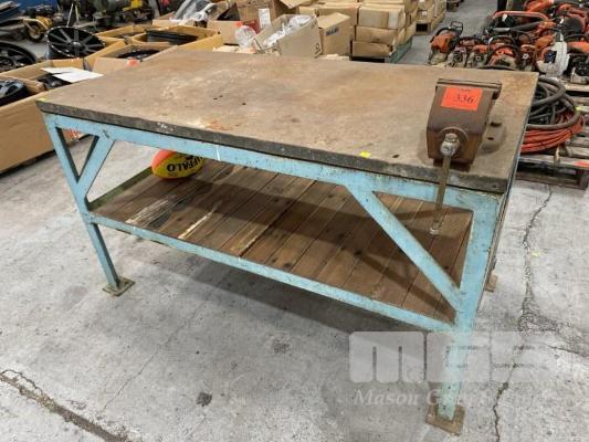 STEEL FRAME WORK BENCH, 153 x 77cm WITH 5" VICE