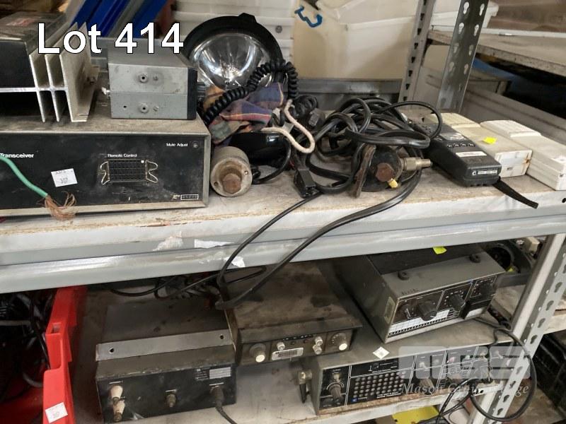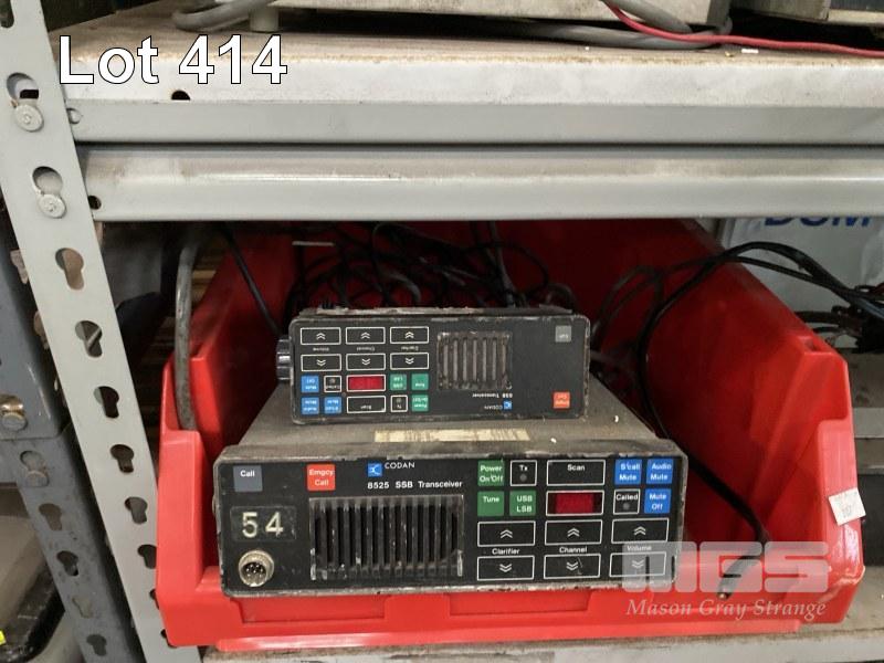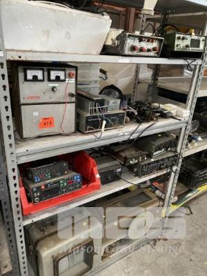 RETRO & VINTAGE RADIO EQUIPMENT INCLUDING CODAN SSB TRANSCEIVER 7727, TRAEGER SAFARI 100, CODAN MARINE TRANSCEIVER, 6801-5 RED ARC POWER SUPPLIES & TRANSFORMERS, HANDHELD 2 WAY RADIOS, CHART RECORDERS & CABLES 4 x SHELVES