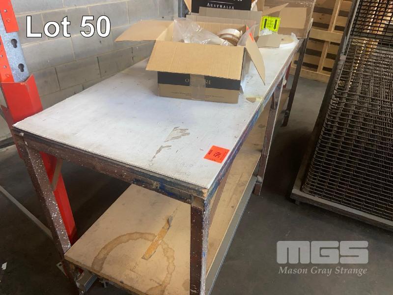 TABLE, STEEL FRAME, PARTICLEBOARD TOP, 2150 x 600mm, 2 TIER