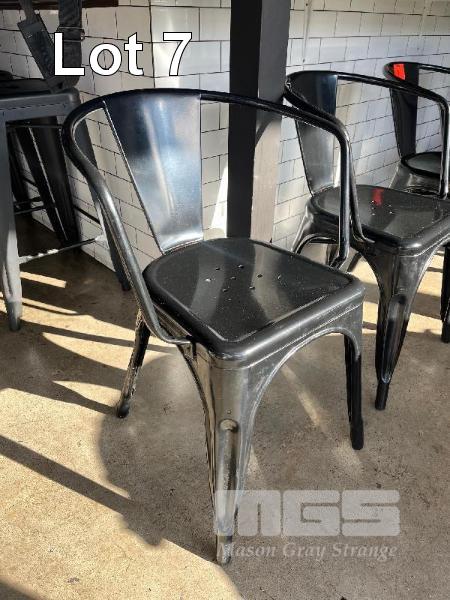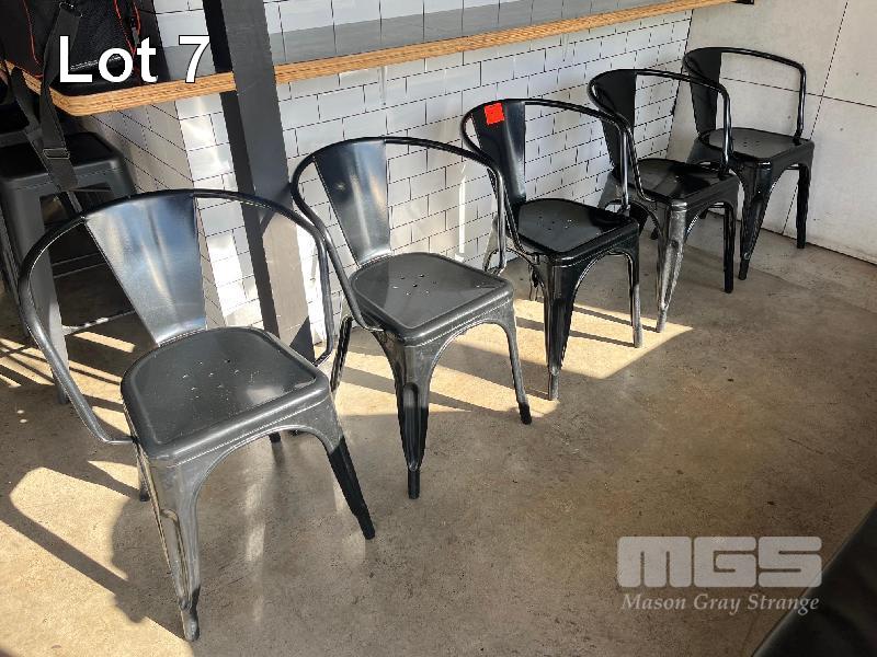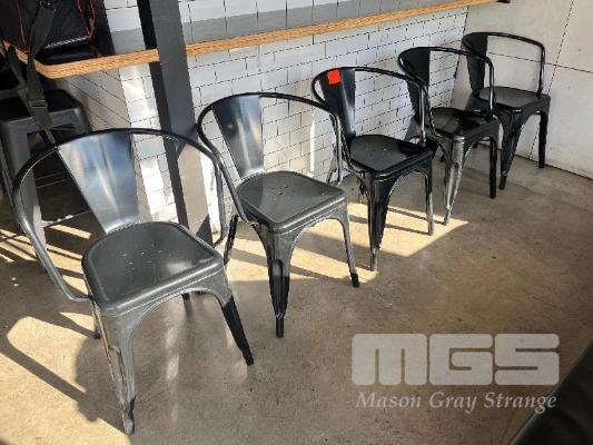 5 x CAFE CHAIRS, BLACK STEEL, STACKABLE