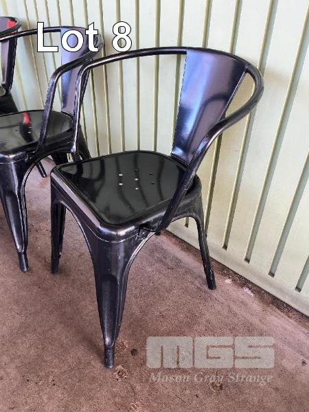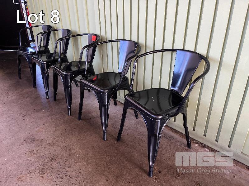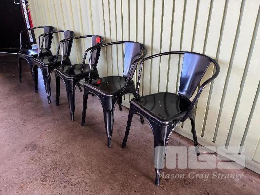 5 x CAFE CHAIRS, BLACK STEEL, STACKABLE
