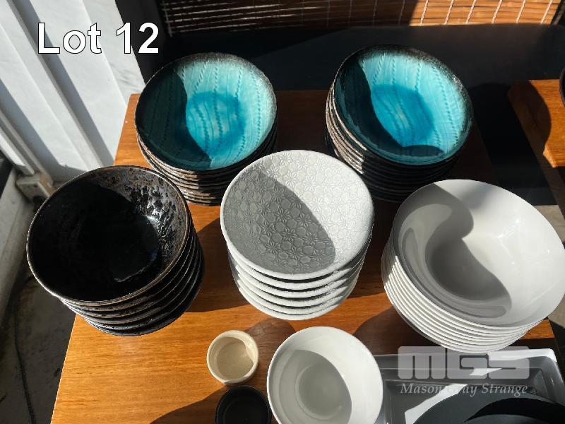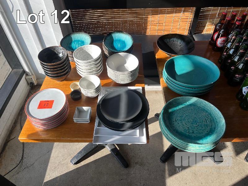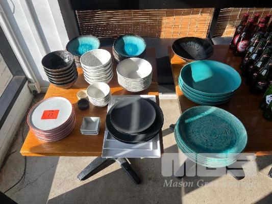 LARGE QUANTITY PLATES, BOWL, SAUCE DISHES 19 x OVAL PLATES 5 x PLATES @ 270mm 4 x PLATES @ 290mm 12x BOWLS, BLACK/WHITE @ 150mm 6 x PLATES @ 190mm