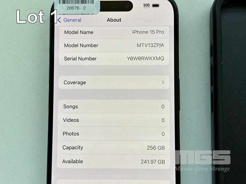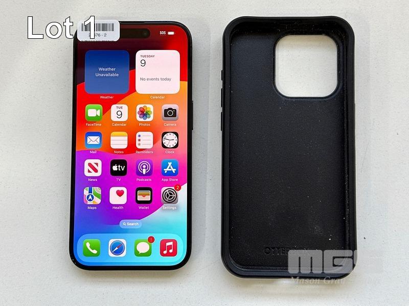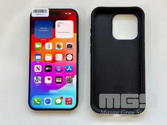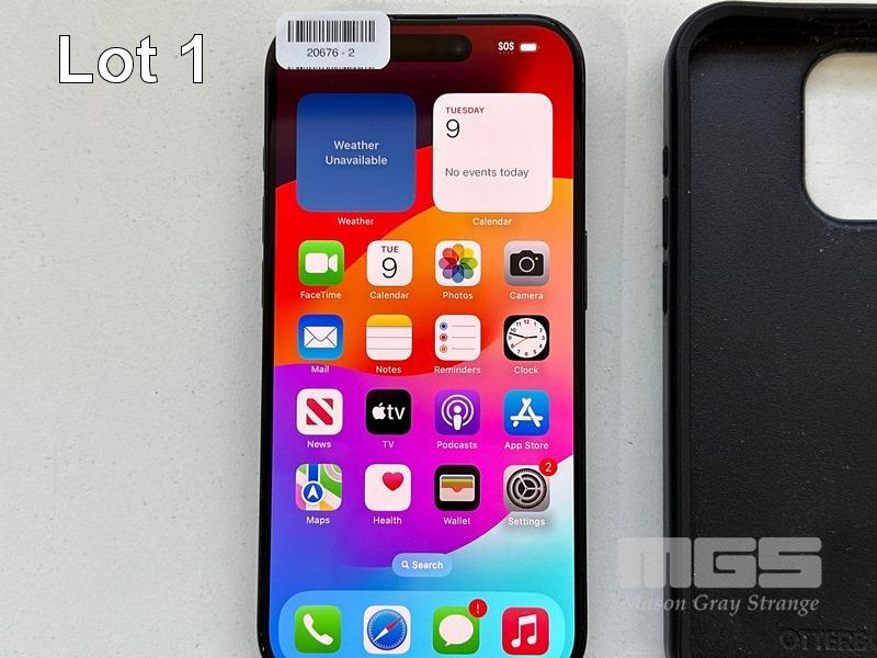 APPLE iPHONE 15 PRO, 256GB, BLACK TITANIUM, MODEL MTV13ZP/A, BATTERY HEALTH 100% WITH OTTERBOX COVER (NO CABLE, NO CHARGER) (NOTE: MINOR SRATCHES ON SCREEN) S/N:Y0W0RWKXMQ
