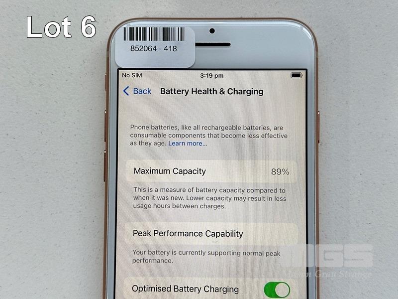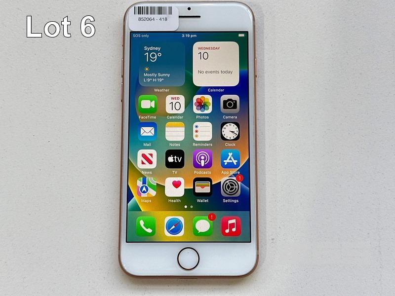 APPLE iPHONE 8, 256GB, GOLD, MODEL MQ7H2X/A, BATTERY HEALTH 89% (NO CABLE, NO CHARGER) S/N:C7CVHJ5PJC6Q