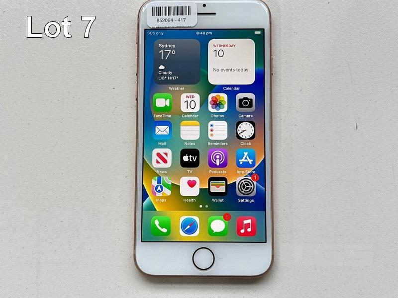 APPLE iPHONE 8, 256GB, GOLD, MODEL MQ7H2X/A, BATTERY HEALTH 87% (NO CABLE, NO CHARGER) S/N:C7CVHK1PJC6Q