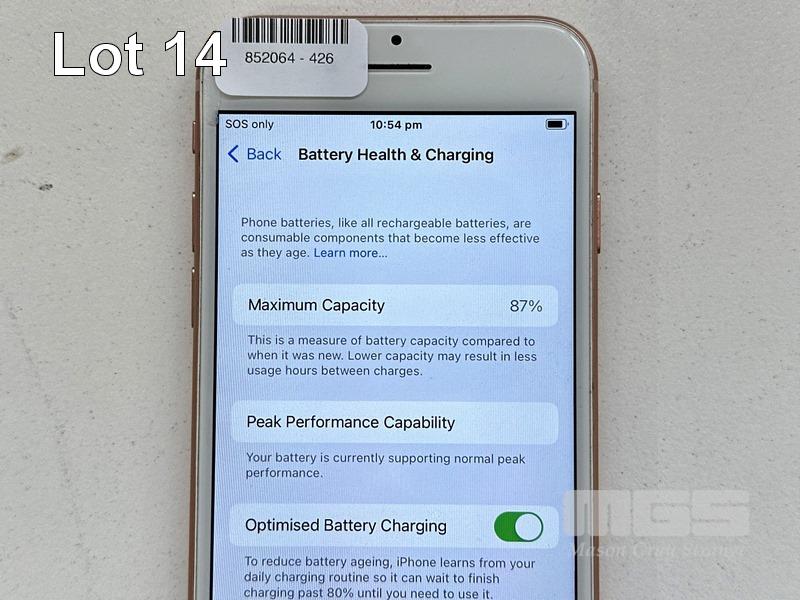 APPLE iPHONE 8, 256GB, GOLD, MODEL NQ7H2ZP/A, BATTERY HEALTH 87% (NO CABLE, NO CHARGER) (NOTE: SCREEN COLOUR POOR) S/N:GGLYF007JC6Q