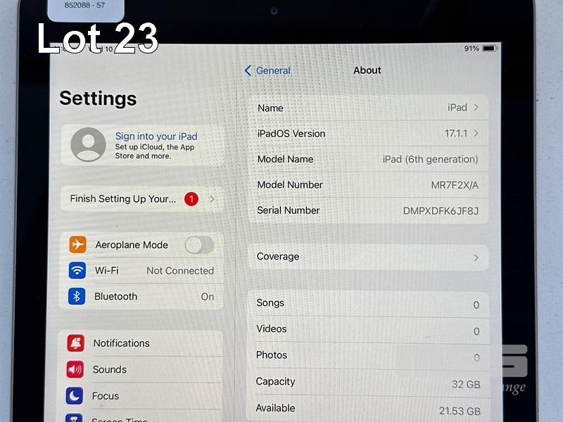 APPLE iPAD 6TH GEN, 32GB, Wi-Fi, SPACE GREY, MODEL MR7F2X/A, A1893 (NO CABLE, NO CHARGER) S/N:DMPXDFK6JF8J