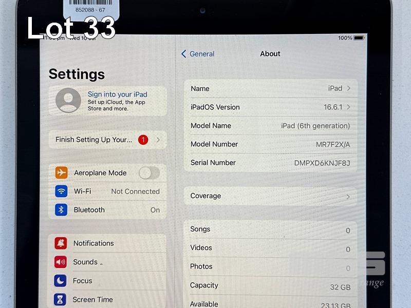 APPLE iPAD 6TH GEN, 32GB, Wi-Fi, SPACE GREY, MODEL MR7F2X/A, A1893 (NO CABLE, NO CHARGER) S/N:DMPXD6KNJF8J