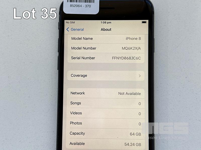 APPLE iPHONE 8, 64GB, SPACE GREY, MODEL MQ6K2X/A, BATTERY HEALTH 100% (NO CABLE, NO CHARGER) S/N:FFNYD068JC6C