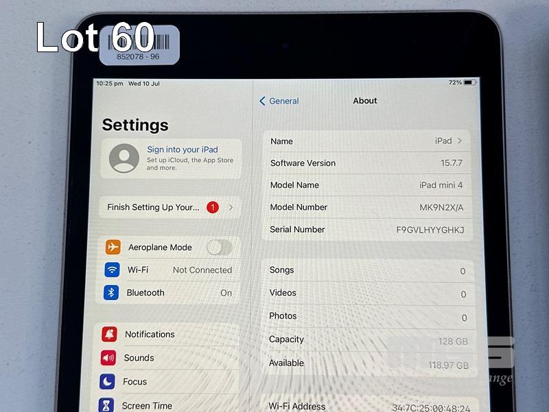 APPLE iPAD MINI 4TH GEN, 128GB, Wi-Fi, SPACE GREY, MODEL MK9N2X/A, A1538 WITH COVER (NO CABLE, NO CHARGER) S/N:F9GVLHYYGHKJ