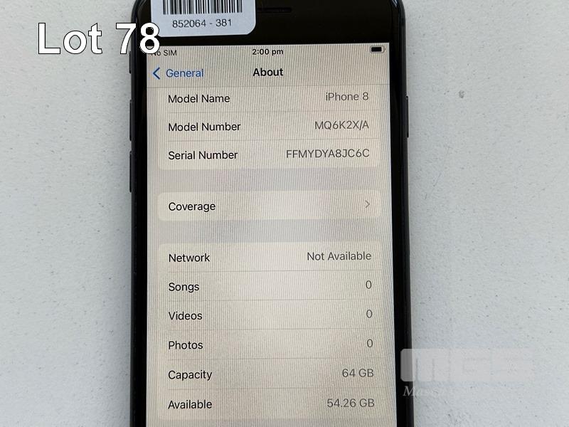 APPLE iPHONE 8, 64GB, SPACE GREY, MODEL MQ6K2X/A, BATTERY HEALTH 88% (NO CABLE, NO CHARGER) S/N:FFMYDYA8JC6C