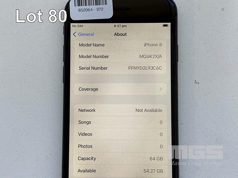 APPLE iPHONE 8, 64GB, SPACE GREY, MODEL MQ6K2X/A, BATTERY HEALTH 88% (NO CABLE, NO CHARGER) S/N:FFNYD2L9JC6C